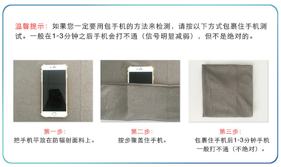 買過防輻射服的買家,都是用包手機檢測是否能打通的方法檢測,其實這樣是不科學的。手機信號和手機輻射是兩種概念,防輻射防的是輻射不是信號,手機信號是高頻微波信號,是手機本身對訊號的接受能力,對人體是無害的。比如,電腦,微波爐等日常使用的電器,輻射強度比手機要嚴重的多,但是卻沒有信號。防輻射源不在信號而在電器元件中。