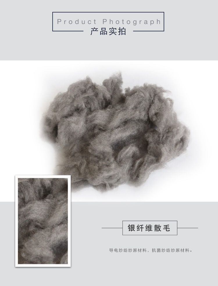 銀纖維具有優(yōu)良的抗菌、導(dǎo)電、防輻射的功能,銀纖維散毛可以應(yīng)用于各種形式的紡織品原料中,抗菌、導(dǎo)電、防輻射,為目前抗菌、導(dǎo)電、防輻射面料織造的材料。