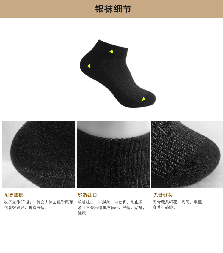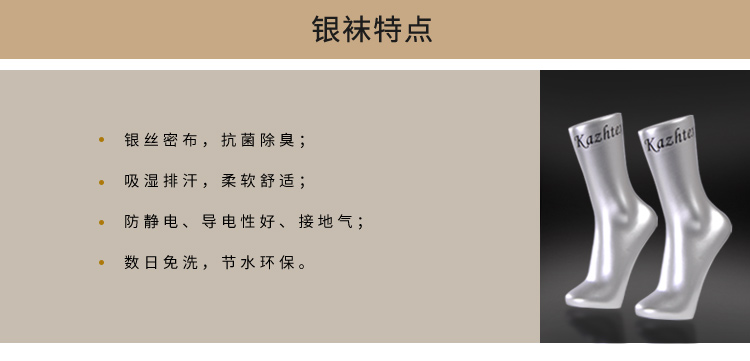 銀纖維抗菌襪,采用銀纖維與長(zhǎng)絨棉混紡織造而成,具有良好的抗菌性,純銀物理殺菌,安全可靠,耐水洗。