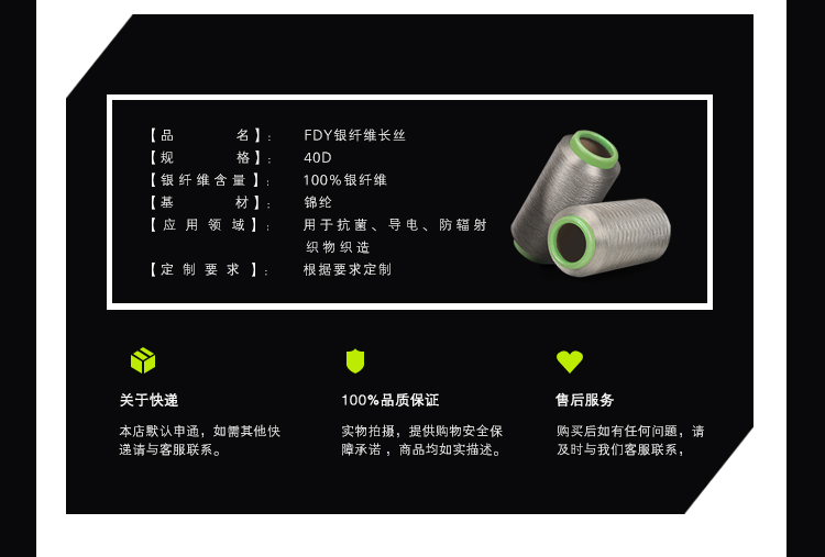 簡述: 纖維,抗菌、導(dǎo)電、防輻射,銀纖維FDY,銀纖維長絲40D