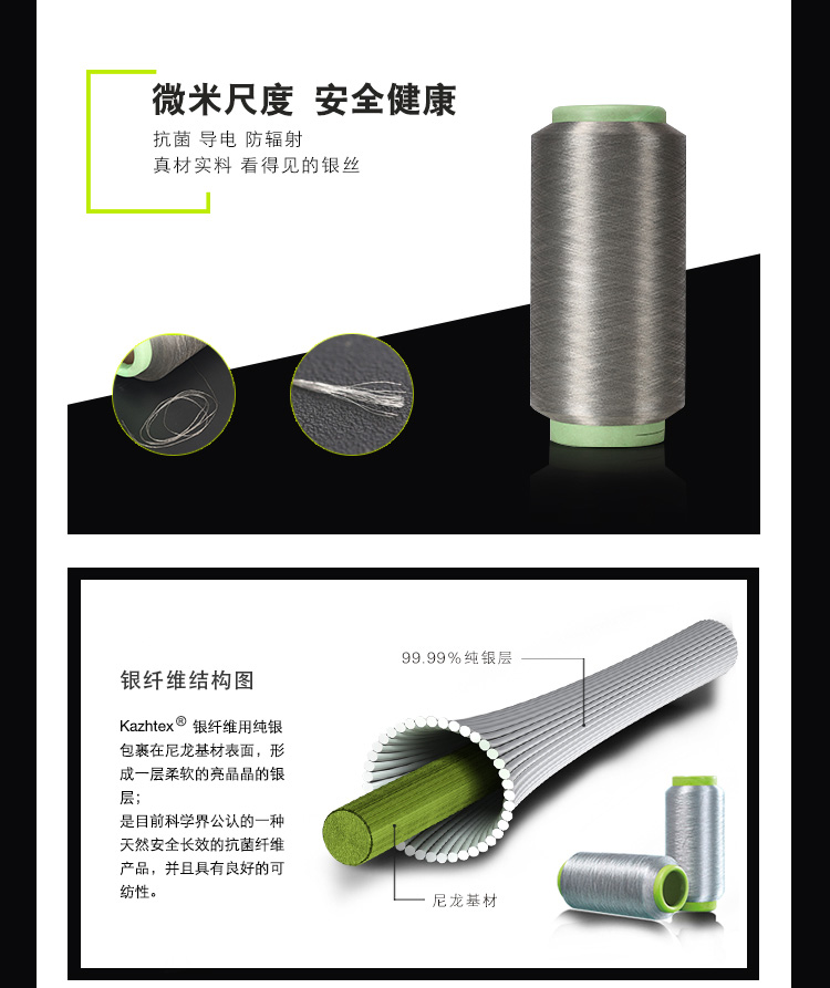 銀纖維具有優(yōu)良的抗菌、導(dǎo)電、防輻射的功能,銀纖維FDY在紡織品方面的應(yīng)用更為廣泛,在保證銀纖維固有特性的前提下,提供織物更優(yōu)良的手感以及舒適度。