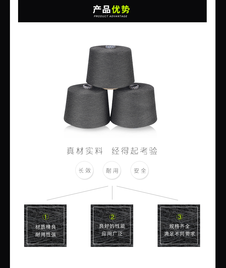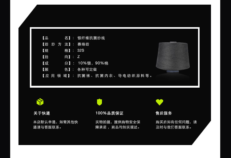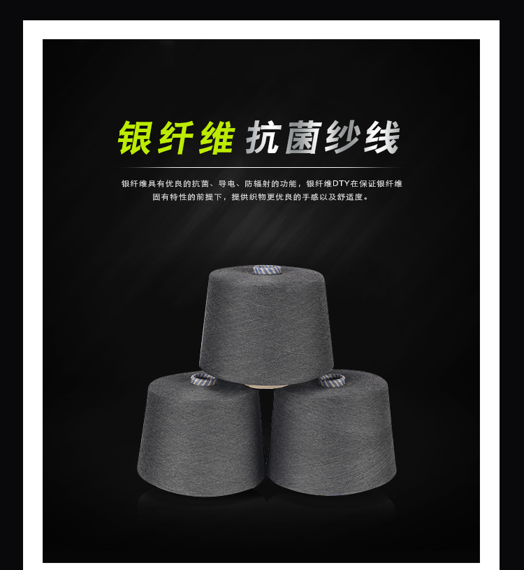 產(chǎn)品名稱: Kazhtex蘇州襪子用抗菌銀纖維紗線批發(fā)32S黑色