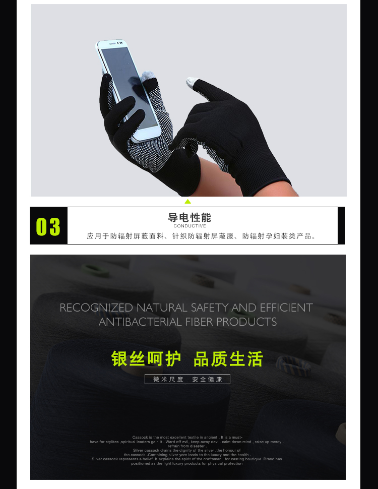 Kazhtex(銀裟)品牌特色:專注于銀纖維原料、織物以及成品定制,為紡織品抗菌、導電、防輻射提供解決方案。