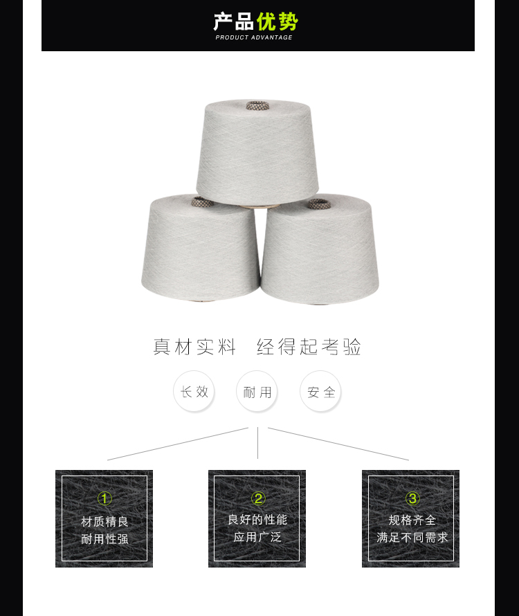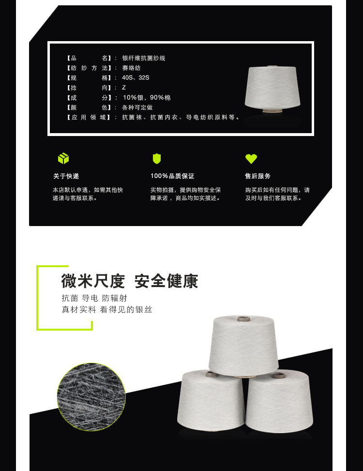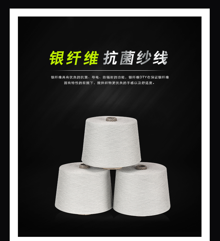 產品名稱: 銀裟江蘇面料用抗菌除臭銀纖維紗定制32S淺灰色