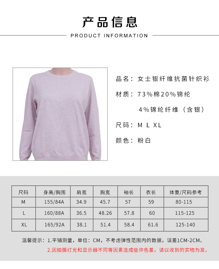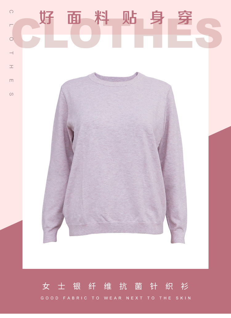 產(chǎn)品名稱: 春秋新款女士銀纖維抗菌針織衫粉色顯白套頭圓領舒適親膚