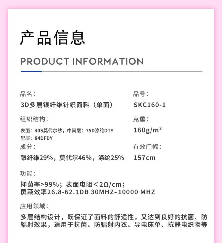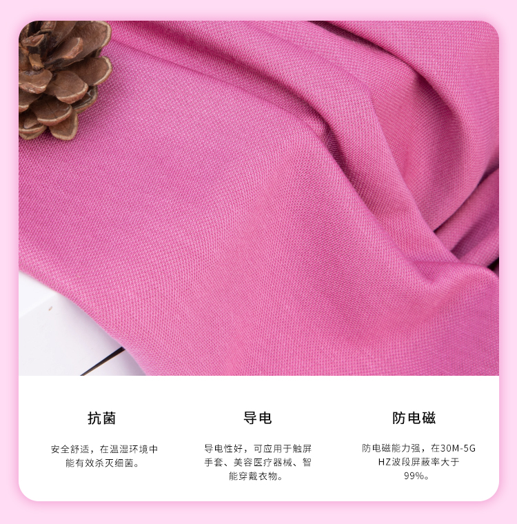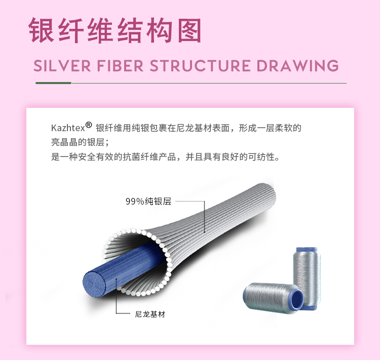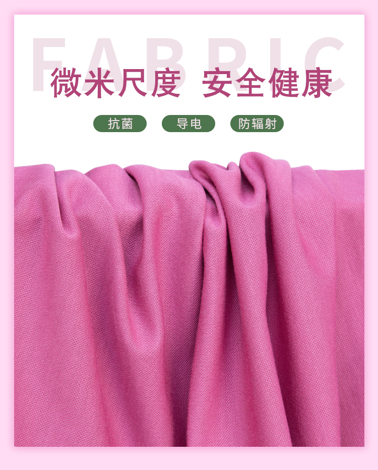 多層結構設計,既保證了面料的舒適性,又達到良好的抗菌、防輻射效果,適用于抗菌、防輻射內衣、導電床單、抗靜電織物等