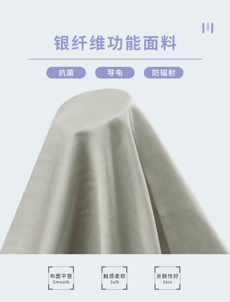 導(dǎo)電防輻射梭織面料,電阻低,抗菌性強(qiáng),觸感柔軟,親膚性好。