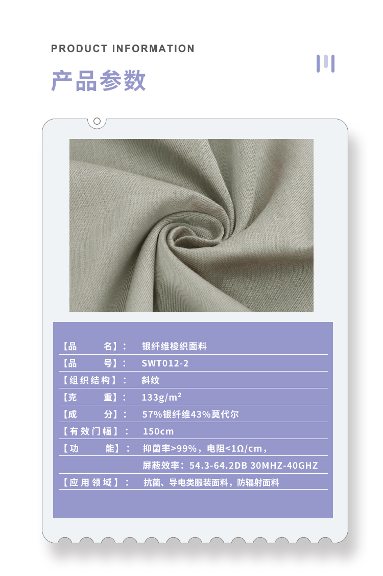 產(chǎn)品名稱: 廠家新款銀纖維抗菌導(dǎo)電防輻射屏蔽窗簾面料智能服裝布SWT012-2