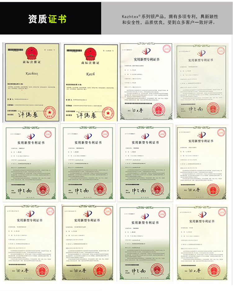 銀纖維與棉完美結合,既保證了棉的舒適性,又可達到抗菌以及防輻射的要求,適用于抗菌、防輻射內衣、導電床單、抗靜電織物等